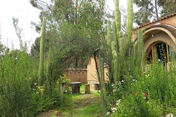 Здание было построено с использованием преимущественно натуральных материалов: камня, самана и соломы. Из его окон открывается прекрасный вид на зеркальные воды озера Титикака и остров Исла-дель-Соль.